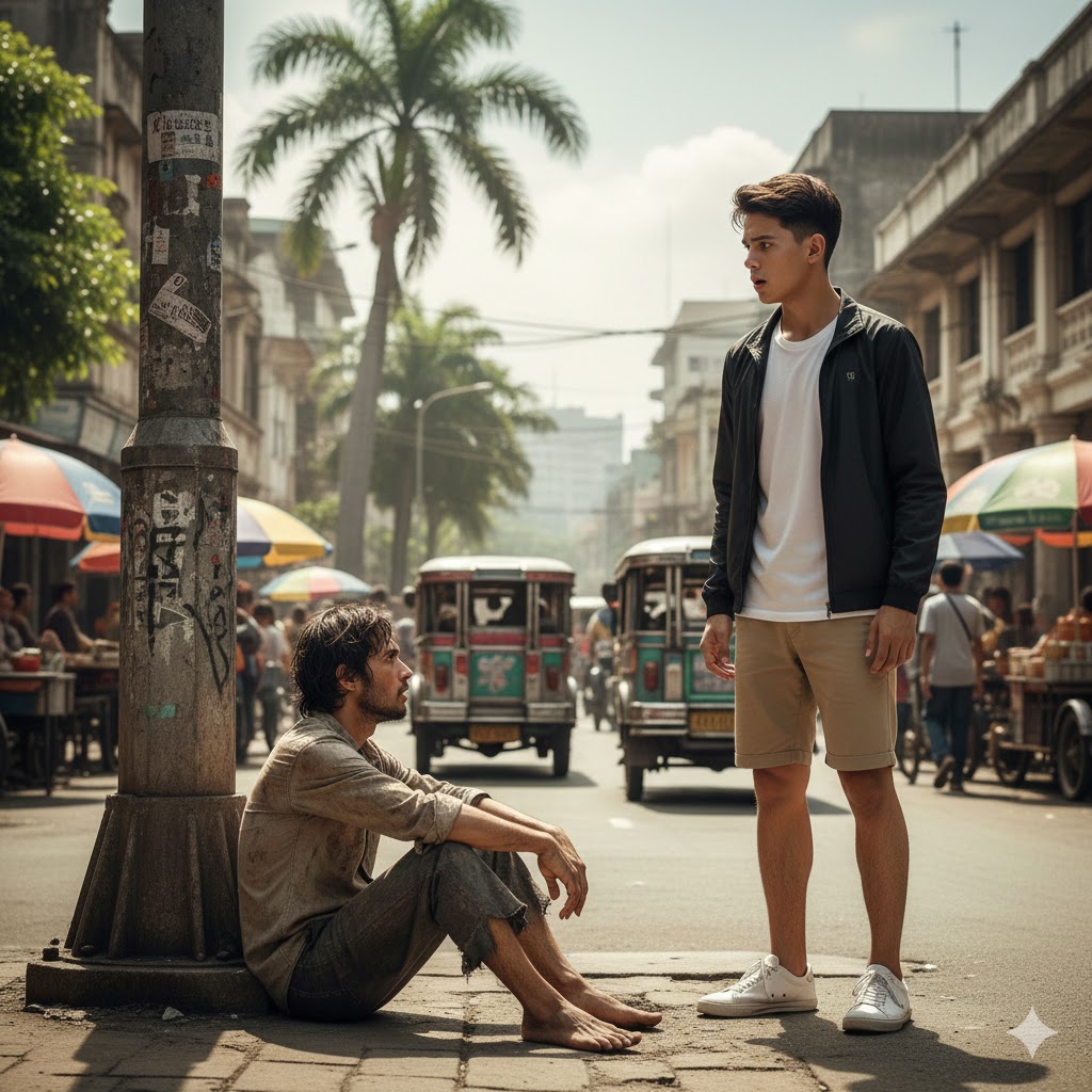 The boy blinked as Theo stood there, unmoving. The noise of Manila rushed around them—honking cars, jeepneys rattling past, vendors shouting. But for one stretched, unreal moment, the city faded into silence.