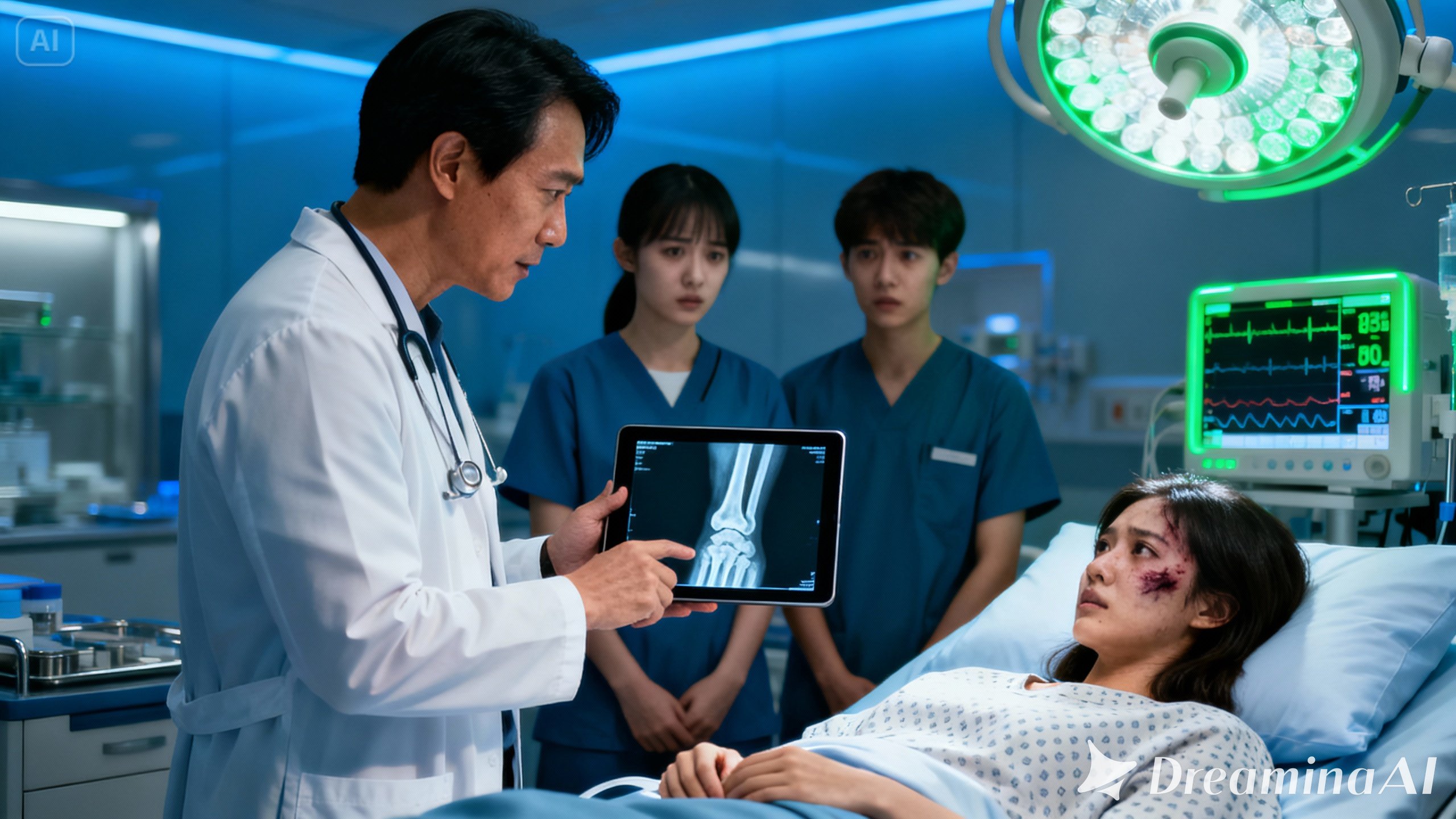 “She has multiple soft tissue injuries caused by repeated external force. But what we need to discuss now is… the additional test results for you.”