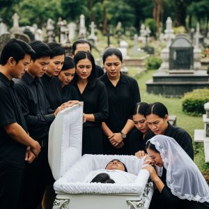 Her face was peaceful — no more tears, no more fear. The room was filled with people, friends, neighbours, old teachers — they came for the child. Few noticed the frail mother sitting beside the coffin, her hand resting on the lid. Her hair unkempt, eyes swollen, face pale from sleepless nights. She stared into nothing. Numb. Hollow.