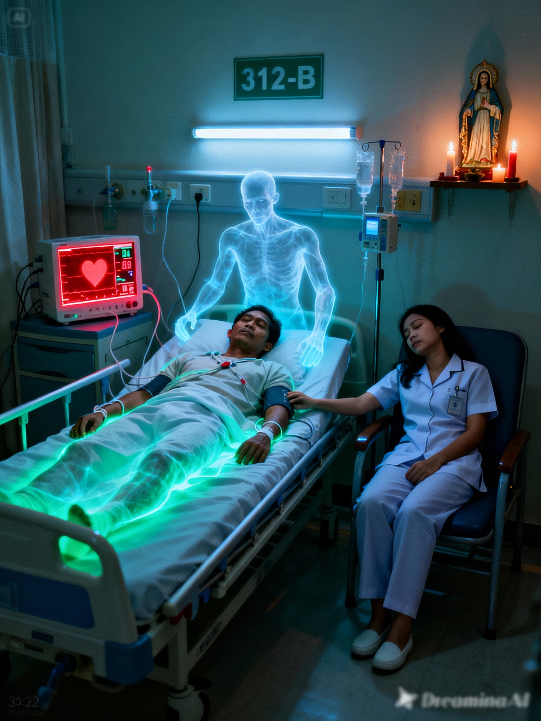 A translucent figure, identical to him, slowly lifted itself free and drifted toward the nurse sleeping upright beside the bed. The shadow reached out and touched her shoulder. She shuddered in her sleep but did not wake. A faint bluish glow filled the room, and seconds later, everything returned to normal.