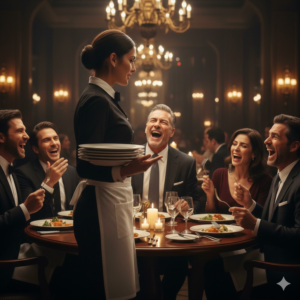 She balanced four heavy plates on her left arm. The billionaire was laughing at her, mocking her in front of his wealthy friends. He asked her, the waitress, what she thought about his $40 billion business deal. It was supposed to be a joke. But she said five words that made every fork at that table stop moving.