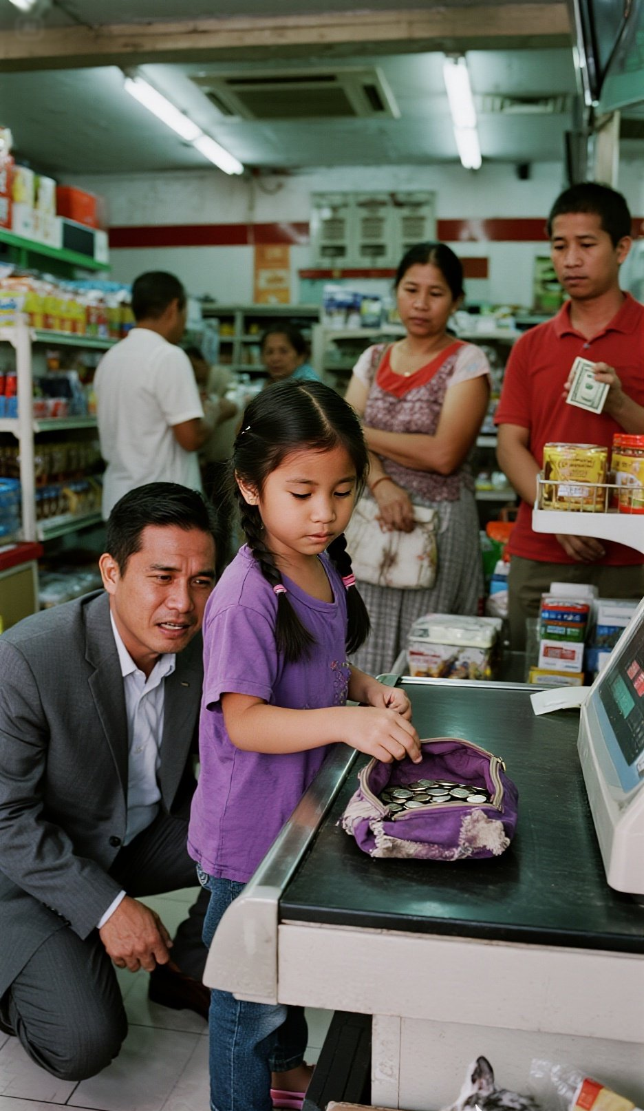 No one paid much attention to the man in the gray suit who joined the line with a full cart. His shoes were polished, his watch clearly expensive—out of place, yet not flashy enough to draw immediate curiosity.