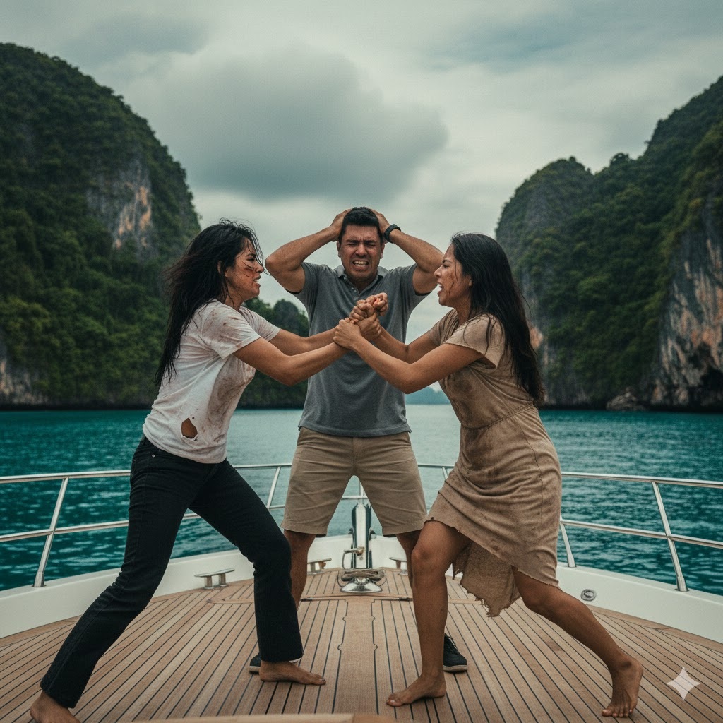 My back hit the railing. Behind me was the black sea, waves raging violently. One slip… and no one would ever know what had happened.
