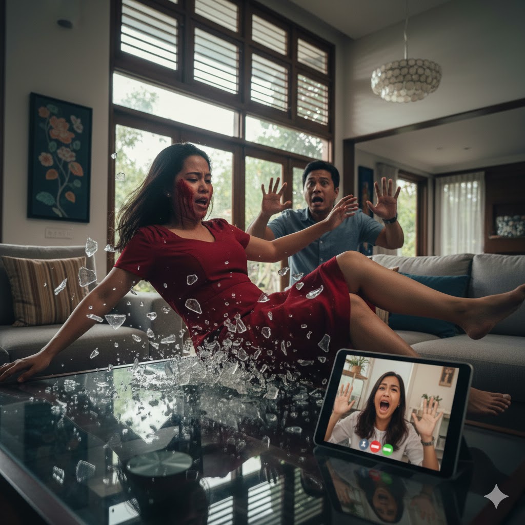 The sickening sound of our glass coffee table shattering beneath her made me scream.