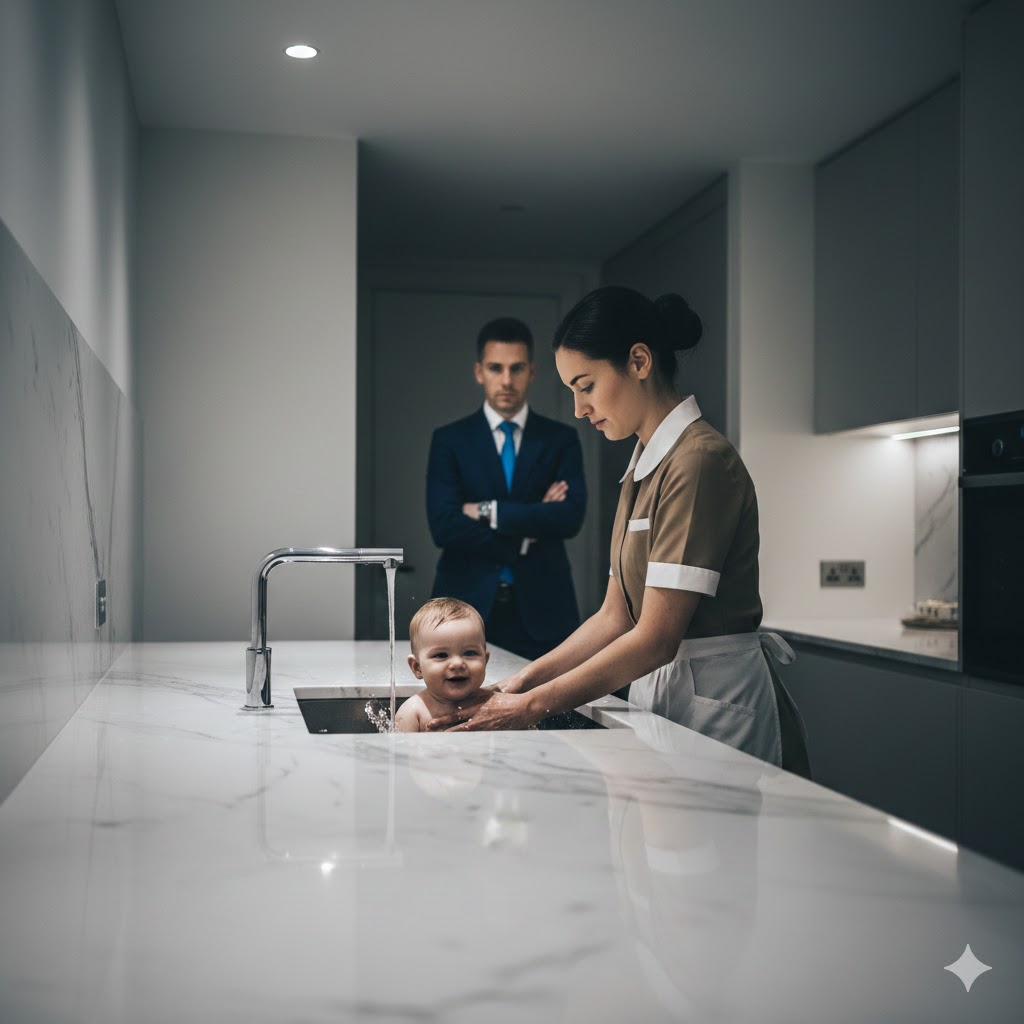 WITHOUT A NANNY… THE CLEANER BATHED THE BABY IN THE SINK… BUT WHEN THE BILLIONAIRE FATHER SAW…