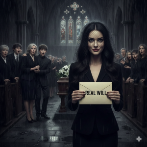 The chapel smelled like lilies and wet wool. Natalie Hale sat in the front pew, hands folded so tightly her knuckles ached, listening to the soft shuffle of people who had come to say goodbye to her husband, Richard. Grief has its own spotlight; she felt every pair of eyes glance at her black veil, then dart away.