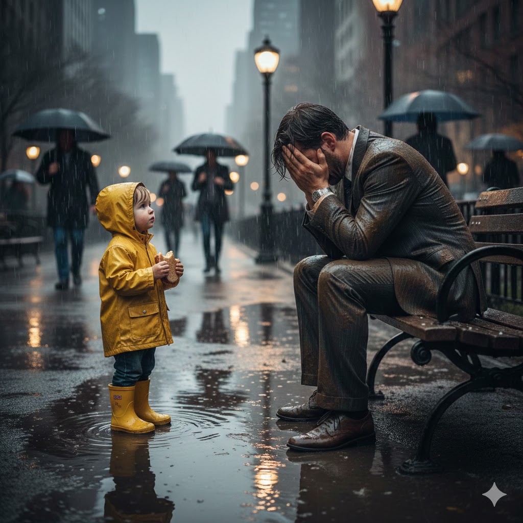 “DO YOU CRY FROM HUNGER, TOO?” the beggar girl asked the millionaire and offered him her last piece of bread. What happened next left everyone frozen…