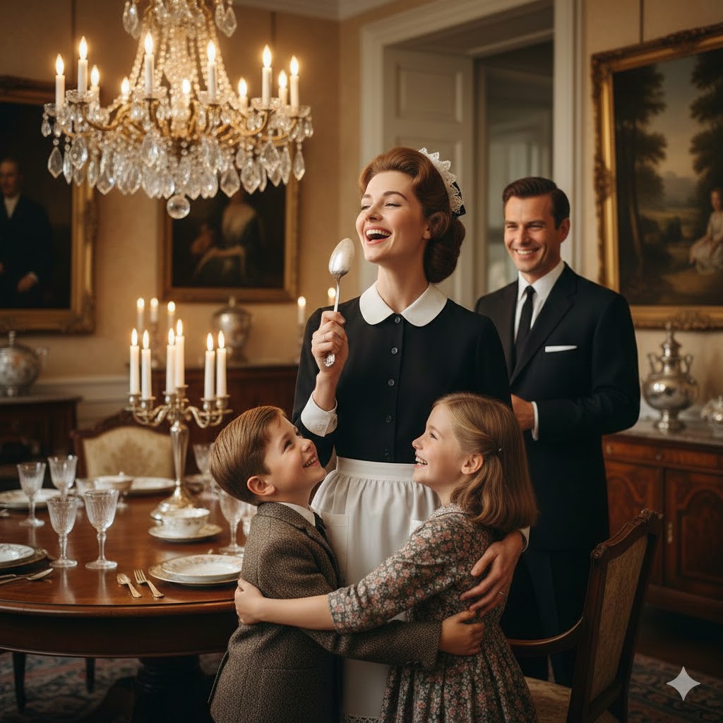 Time passed, and one evening, Adrian found himself watching another scene unfold at the dining table. Ethan and Lily were laughing again, this time teaching Rosa a silly dance they had learned at school. The chandelier glowed with golden light, the room resonated with joy, and Adrian’s heart swelled in a way he had never felt before.