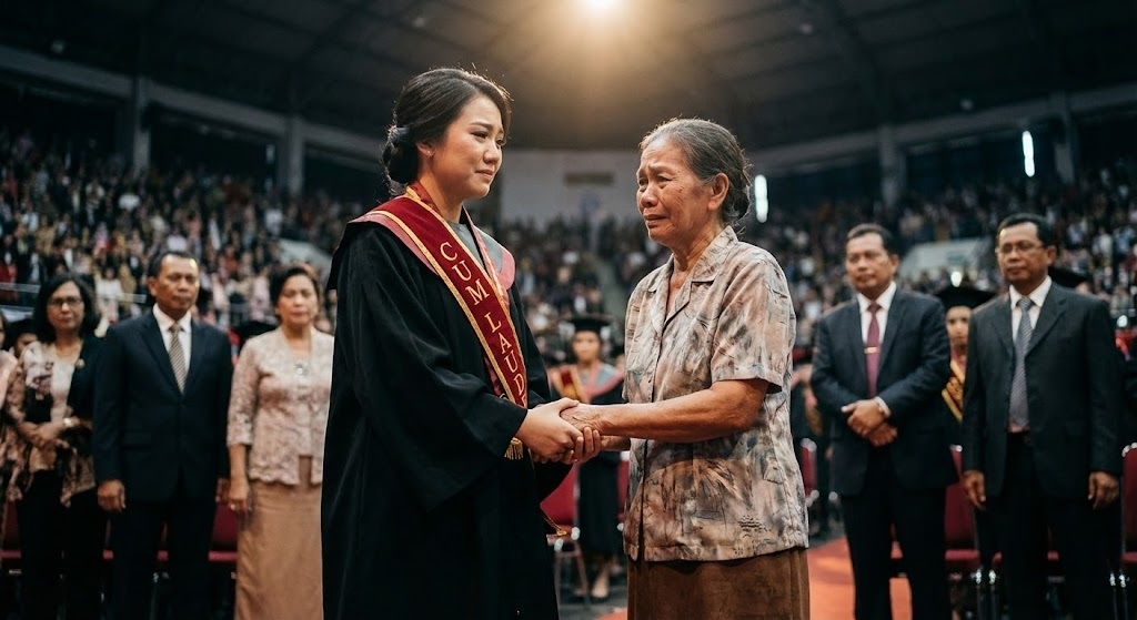 A CUM LAUDE GRADUATE WAS ASHAMED TO WALK ON STAGE WITH “JUST A MAID” — BUT THE ENTIRE GYMNASIUM FELL SILENT WHEN SHE TOOK HER HAND