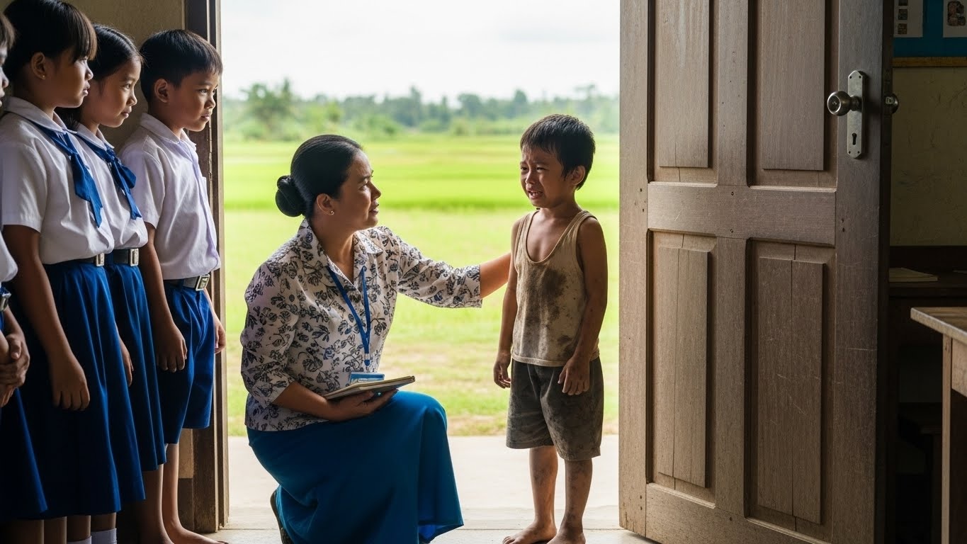 A TEACHER SCOLDED A “MUD-COVERED” BOY PEEPING THROUGH THE WINDOW — BUT THE ENTIRE CLASS BROKE INTO TEARS WHEN THEY SAW HIS NOTEBOOK: COMPLETE NOTES, EVEN THOUGH HE WASN’T ENROLLED