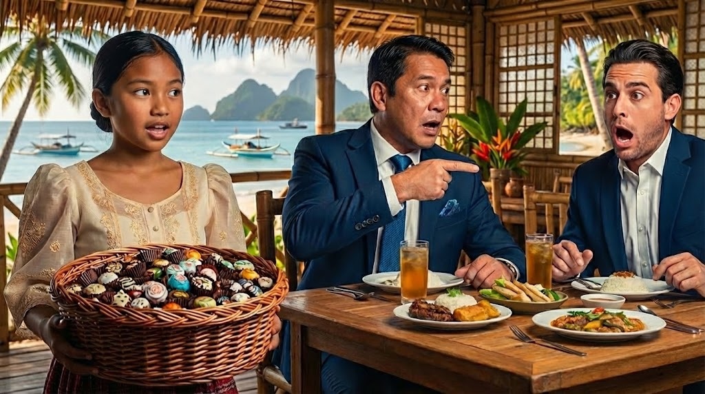 A young girl approached the table. She couldn’t have been more than ten. Her hair was neatly tied back, her dress simple—clean, but worn at the seams. In her arms, she carried a small basket of chocolates, each one carefully wrapped with a ribbon, as if that detail were a prayer.