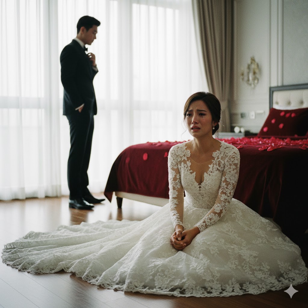 That night, the suite was filled with the scent of fresh sampaguita and roses. Adrian stood across from me, dressed in a crisp white shirt, his face perfectly handsome yet shadowed by sadness. As he drew near, I trembled—then, the truth struck like a thunderclap.