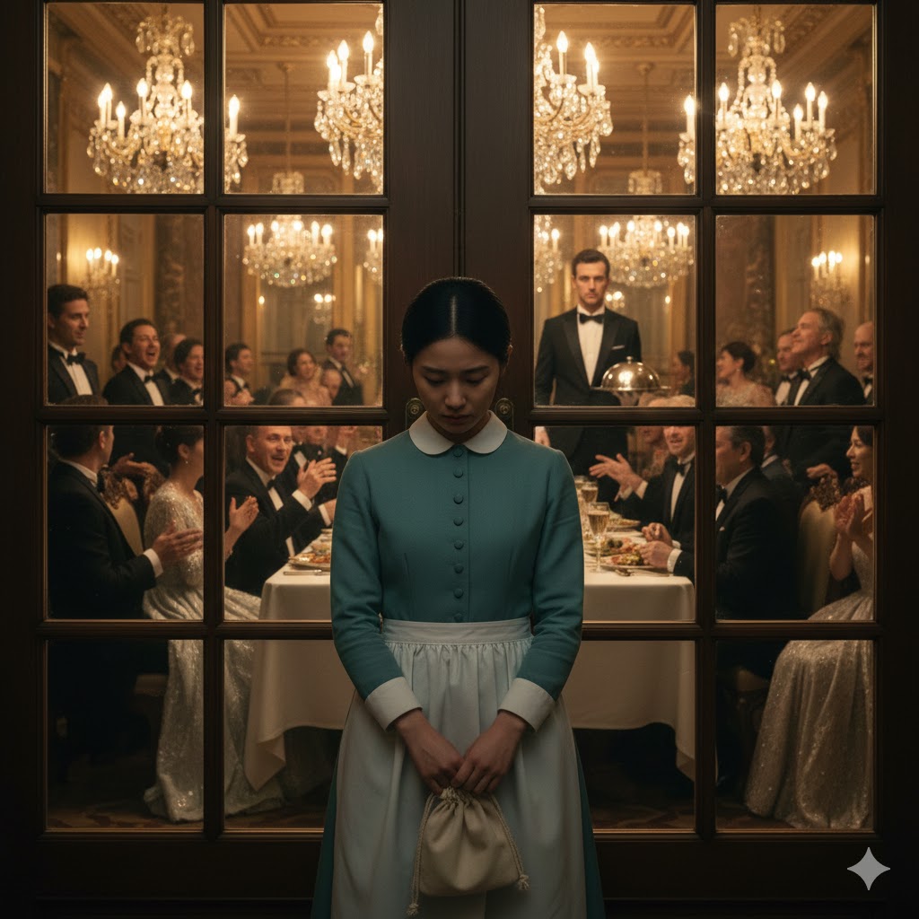 Inside, Ma’am laughed with her friends. They were all polished—shiny shoes, fragrant perfume. I, in a simple blouse and worn shoes, stared at my reflection in the glass, feeling like I was in another world.