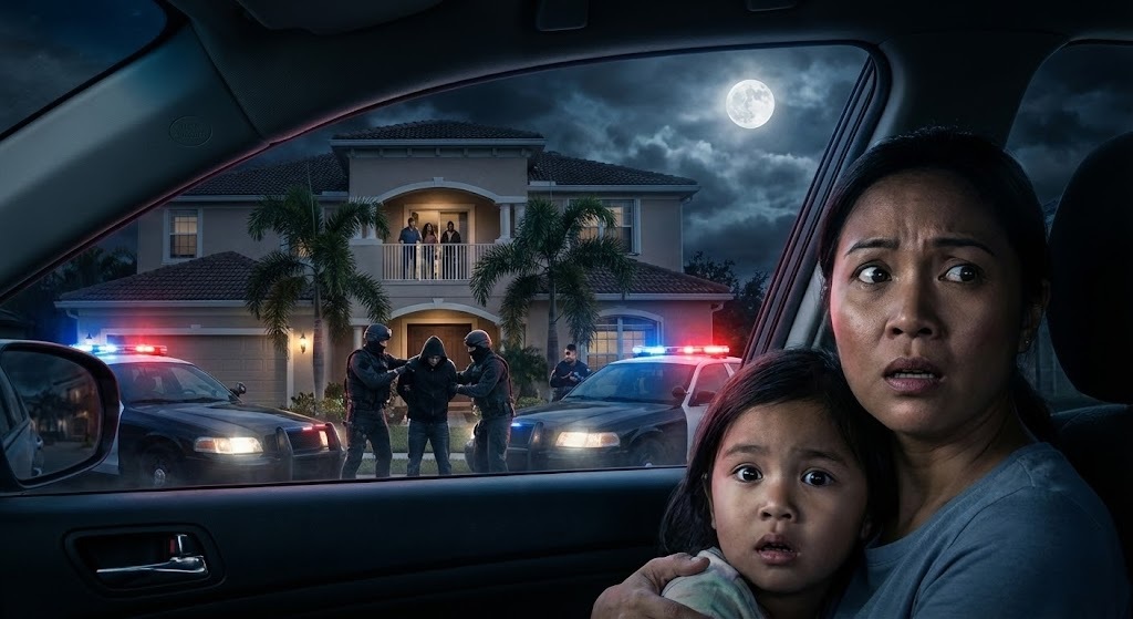 Two police cars screeched to a stop in front of my sister’s house, blocking the driveway. Officers jumped out with guns drawn, shouting commands. Neighbors stepped onto their porches, phones raised.