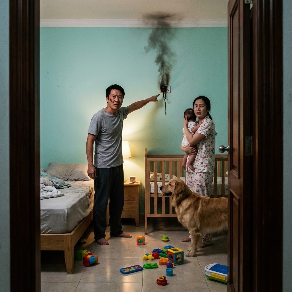 Behind the crib, he saw that the wall was blackened. The electrical outlet for the fan had melted and was charred.