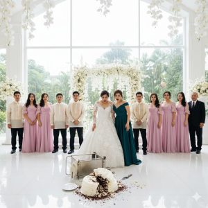 Umalingawngaw ang tunog. Umalog ang pitong-palapag na tore at bumagsak sa marmol. Nagkawasak ang porselana. Sumabog ang sponge cake at cream—nabalahiran ang mga nauunang bisita. Natakpan ang damit ko at mamahaling tuxedo ni David ng icing at gintong dahon.