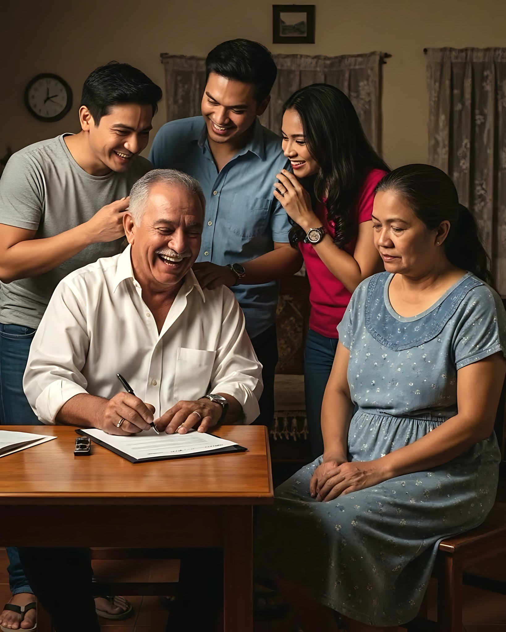 राघव और उसके बच्चों ने—गवाह के रूप में—बिना पढ़े दस्तावेज़ पर हस्ताक्षर कर दिए।