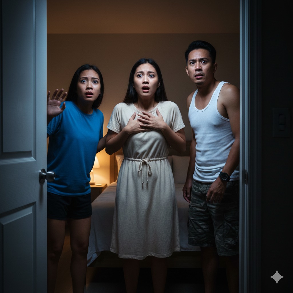 Lumabas si Marisol ng pinto, tumingin pabalik sa dalawang lalaking natataranta. Mabilis na tumalon si Diego mula sa kama, lumuhod sa harap ng kanyang asawa, hindi na nahihiya.