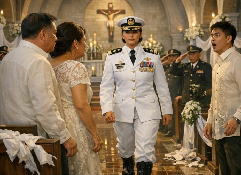 Wala akong sinabi. Hindi kaagad. Nagpatuloy ako sa paglalakad, bawat hakbang ay matatag, ang takong ay mahinang tumatama sa sahig na kahoy na may tahimik na awtoridad. Huminto ako kung saan karaniwang nakatayo ang isang nobya: matamis, nagniningning, marikit. Hindi ako marikit o nagniningning. Nakatayo akong tuwid, matatag, sinusuportahan ng aking uniporme.