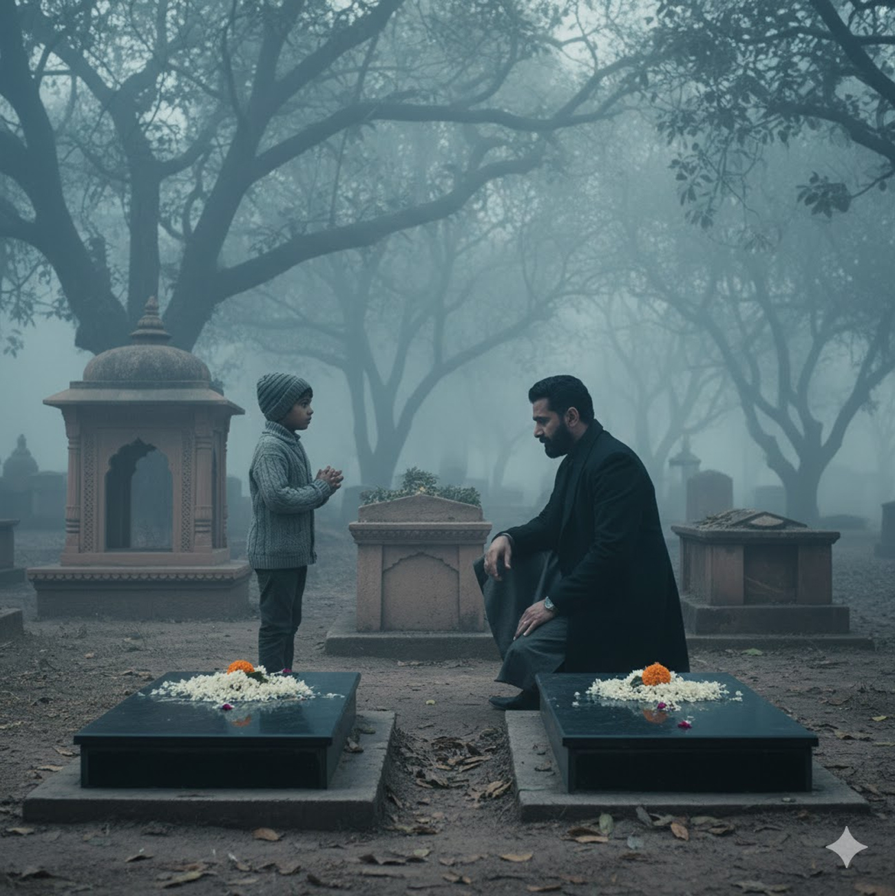 एड्रियन मल्होत्रा कब्र के पत्थरों के बीच चला गया, सफेद फूलों का गुलदस्ता अपनी छाती पर कसकर पकड़े हुए। उसने अन्य नाम नहीं पढ़े। वह नहीं कर सका। उस जगह पर बाकी दुनिया का दर्द सिर्फ शोर था। हालाँकि, उसका अपना दर्द उसके अंदर घंटी की तरह बज रहा था जो कभी नहीं रुका।