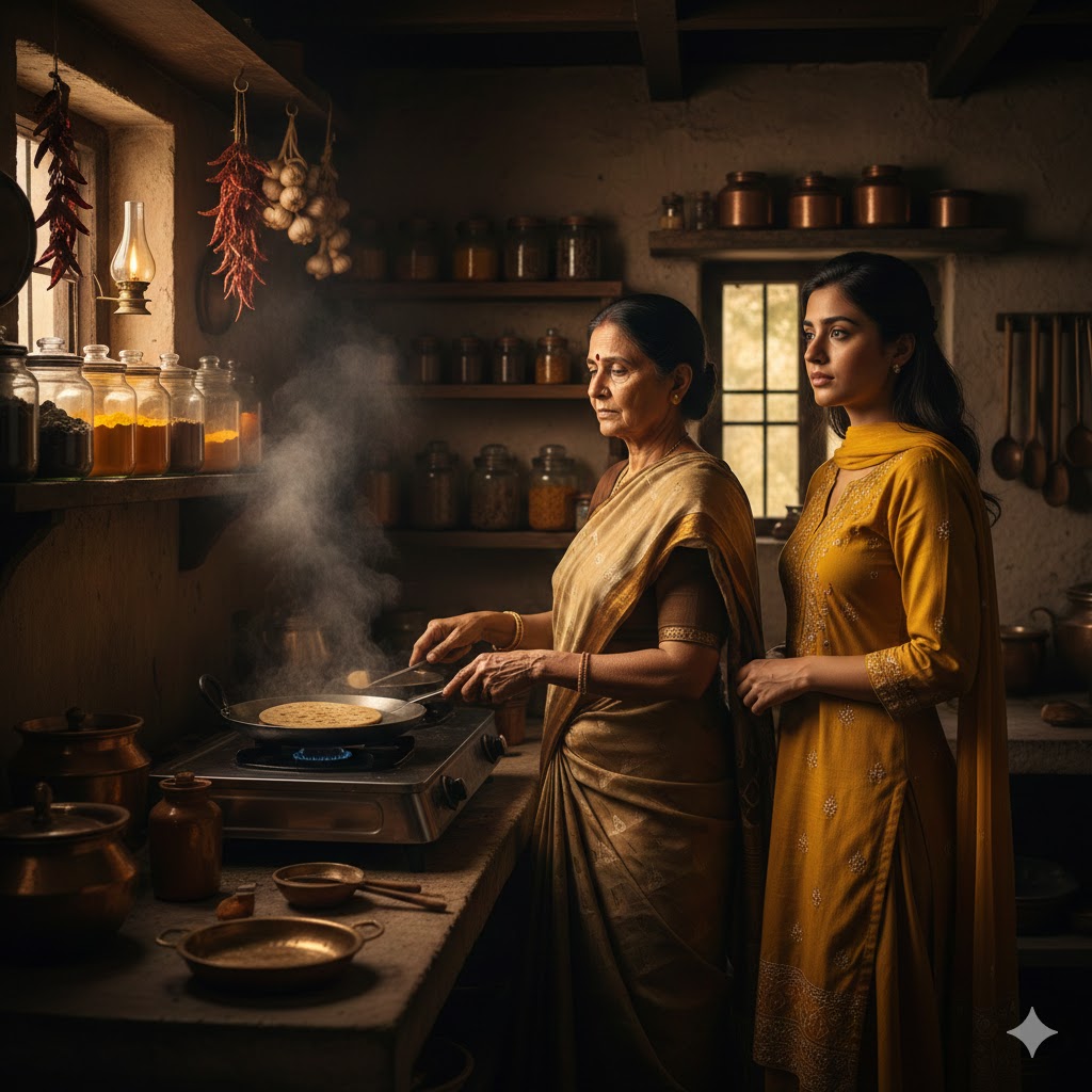 तभी सास ने जोड़ दिया, “हाँ, बनाती तो ठीक है, लेकिन खाना थोड़ा कम बनाती है। घर बड़ा है, हाथ खुला रखना चाहिए।”