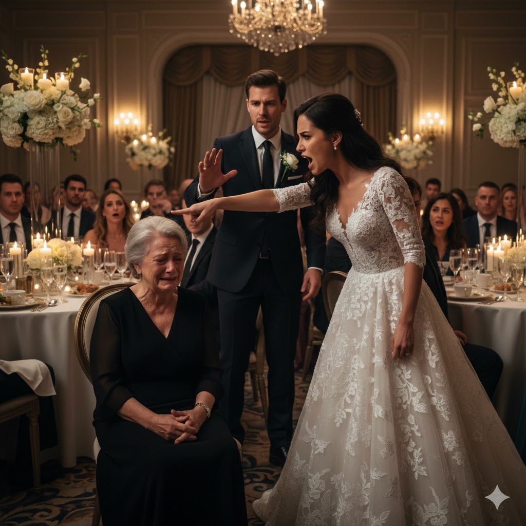 मैं अपने ही बेटे की शादी के भव्य हॉल के बीच खड़ी थी, समझ नहीं पा रही थी कि अपने हाथ कहाँ रखूँ, नज़र कहाँ टिकाऊँ। शालीन फुसफुसाहटें, काँच के गिलासों की खनक और धीमी संगीत—सब एक पल में थम गया जब दुल्हन क्लाउडिया ने मुझे ऊपर से नीचे तक देखा, होंठों पर टेढ़ी-सी मुस्कान लाते हुए ऊँची आवाज़ में कहा,