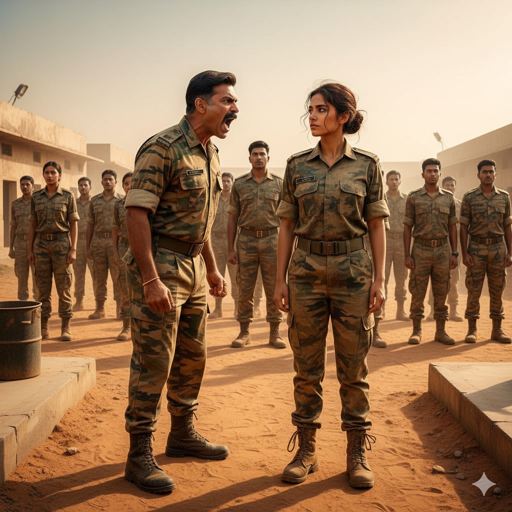 मैं भर्ती सैनिक अनन्या राव थी, सत्ताईस वर्ष की, कथित तौर पर तेलंगाना के एक छोटे से ग्रामीण इलाके से, बिना किसी खास शिक्षा या सिफारिश के। मैंने अपने जूते जानबूझकर थोड़ी असावधानी से बांधे, ताकि मेरे हाथ बाकी सब से ज़रा धीमे दिखें। मेरे बाल नियम के अनुसार बंधे थे, लेकिन जानबूझकर थोड़े बिखरे हुए — जैसे कोई अभी सैन्य कठोरता को नहीं समझता।
