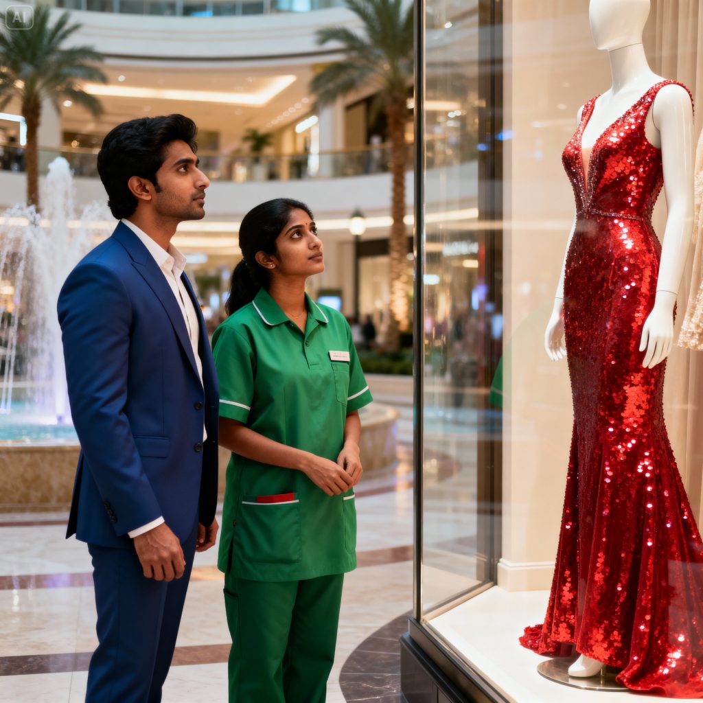 मारियाना के पीछे शोकेस में रखा लाल रूबी जड़ा हुआ वही पोशाक—जिसे उसने तुच्छ समझा था—उस पर उसी का नाम अंकित था।