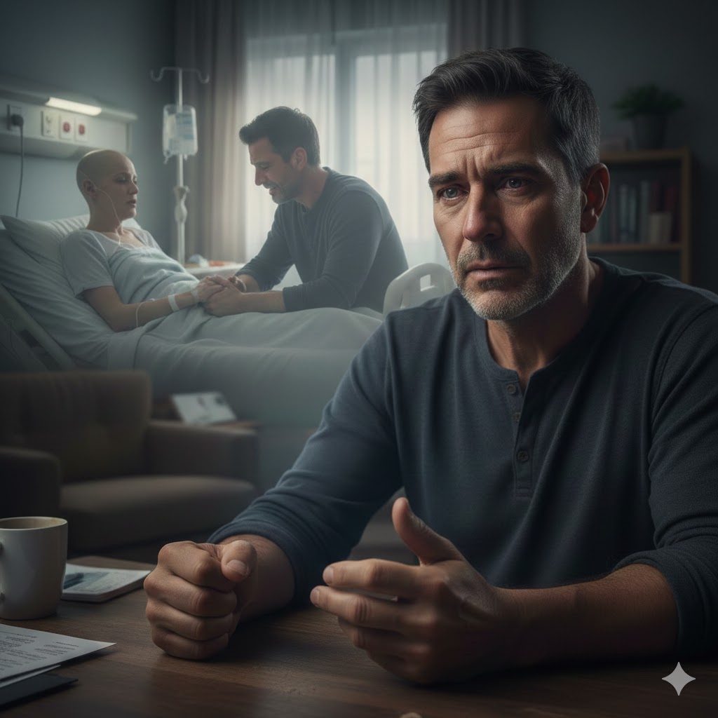कीमोथेरेपी से उसकी आवाज़ भारी थी, हाथ काँपते हुए जोक़िन के हाथ पर रखा था।