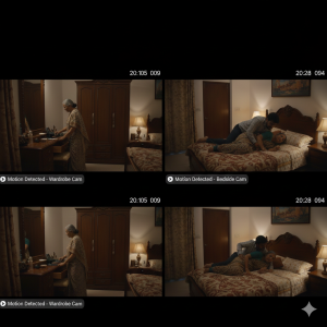 मैंने फटाफट दूसरा कैमरा खोला—वो जो बेडसाइड टेबल के सामने था। वहाँ भी वही दृश्य अलग एंगल से था। और उसी एंगल ने मुझे पहली बार वह चीज़ दिखा दी, जो मेरे शक को यकीन में बदल गई।