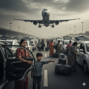 रोहन एयरपोर्ट के प्रवेशद्वार पर खड़ा था, फोन कान से लगाए, चेहरे पर तनाव।