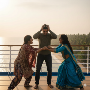 मेरी बड़ी बहन स्नेहा दीदी मीठे शब्दों में पूरे परिवार को क्रूज़ पर ले जाने की बात कर रही थी, और उसी रात, जब मैं बाथरूम जाने निकली, तो अचानक मैंने उसे मेरे पति अर्जुन के साथ इश्क लड़ाते हुए देख लिया। गुस्से में मैं उनको रंगे हाथ पकड़ने दौड़ी, तो दीदी ने हाथापाई करके मुझे समुद्र में धक्का देने की कोशिश की, पर उसे क्या पता था कि मैं पहले से ही सब कुछ सोचकर चल रही हूँ।