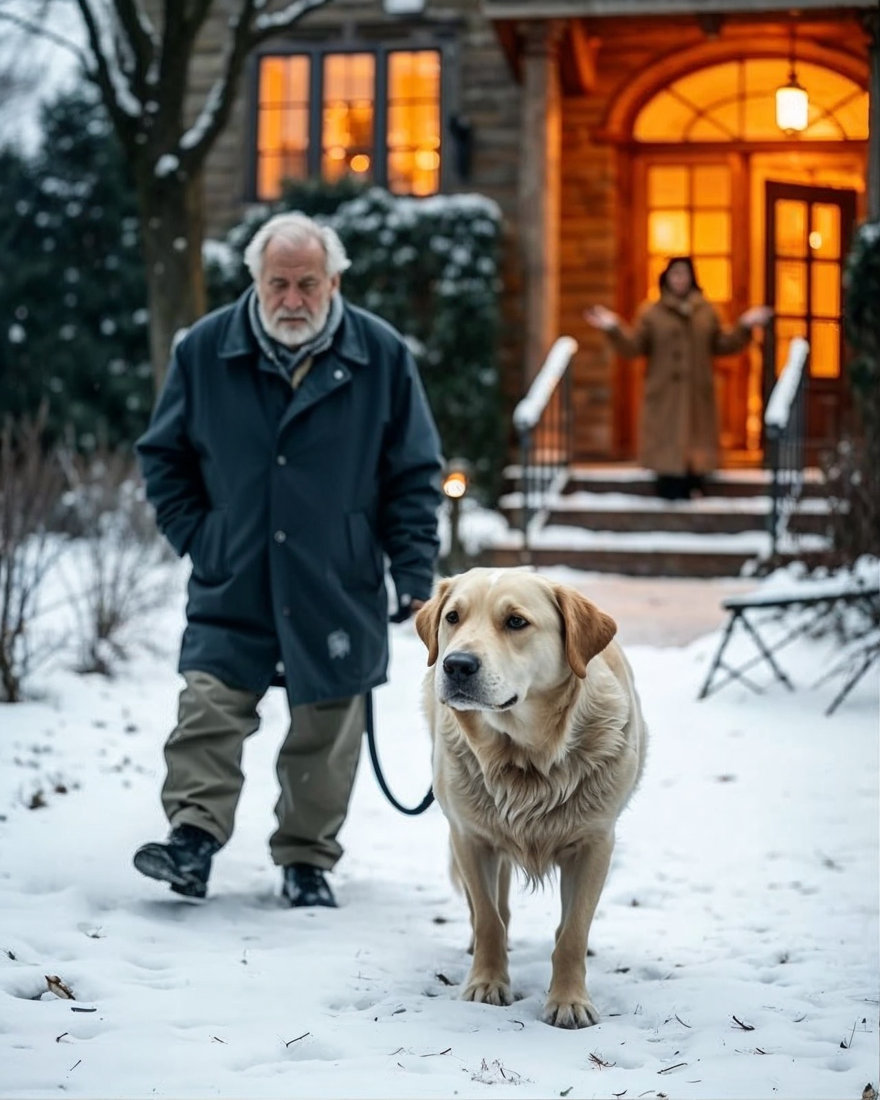 El perro lo condujo por varias calles nevadas hasta que llegaron a una pequeña casa, donde la puerta se abrió al instante. Una mujer, vestida con un chal cálido, apareció en el umbral.