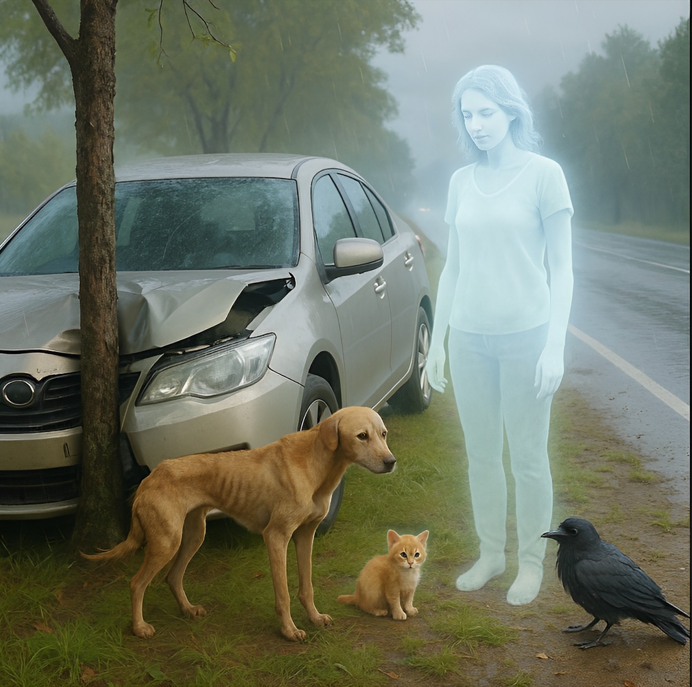 Y en ese mismo instante, Alexandra lo recordó todo. Cada detalle: cómo su coche se descontroló, se salió del camino, dio vueltas en el aire… y cómo el impacto final convirtió su vida en un simple fragmento.