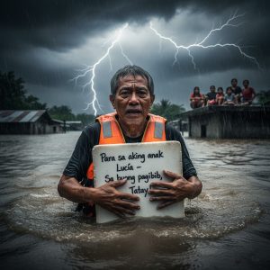 He couldn’t reach his daughter, who was married and lived far away. A 70-year-old father hugged a box of food and swam through floodwaters to bring aid to his daughter, who lives in the worst-hit area.