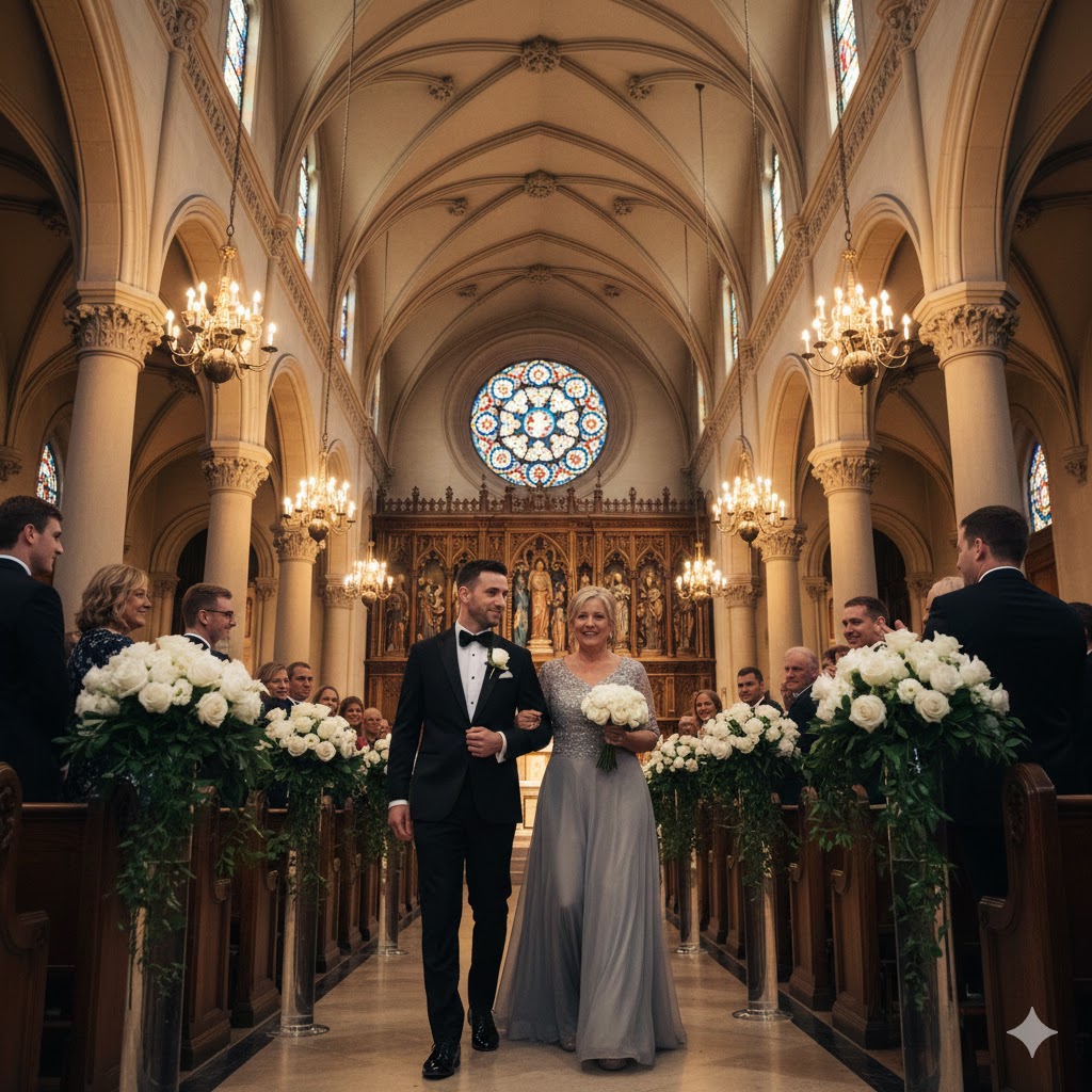 The officiant and groomsmen took their places at the altar. Then Nathan appeared at the end of the aisle. My throat tightened at how much he looked like Richard. How proud Richard would have been.