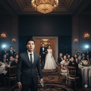 Pagkatapos, lumabas ang bridegroom. Sa sandaling iyon, gumuho ang lahat ng plano ko. Hindi siya ang “security guard” na nasa alaala ko. Ang lalaking nakatayo sa entablado ay may aura ng isang tunay na pinuno. Bawat hakbang ay matatag, bawat galaw ay may dignidad.