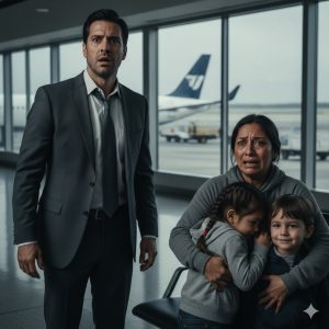 She looked away, her face flushing with a shame that made him, for the first time, feel a strange, unfamiliar pang in his chest. She pulled the children closer. “I’m just… we’re waiting for a flight.”