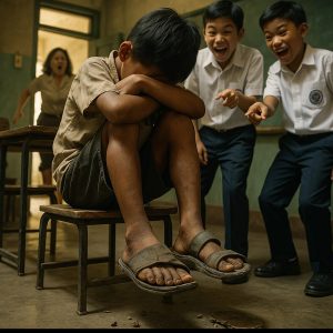 During gym class, the teasing escalated. As the boys lined up for basketball, one deliberately stepped on Malik’s foot, further tearing it up. He tripped, earning another round of laughter.