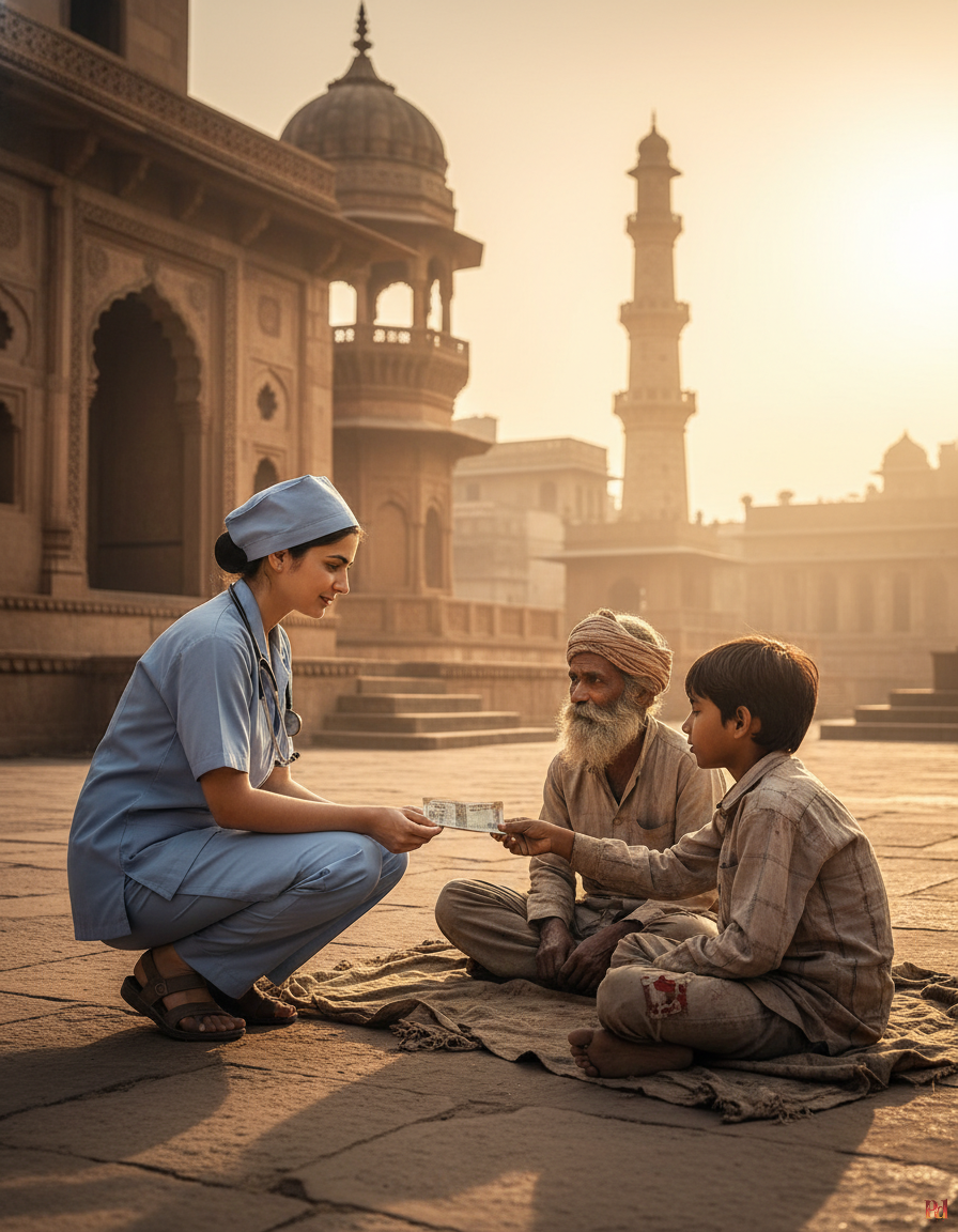 Several people throw coins at them without looking, others pretend not to see them. Mateo is already getting sad when a woman stands in front of them. She’s young, maybe in her early twenties, wearing a blue cleaning uniform and worn sneakers. Her face is tired, but her eyes are kind.