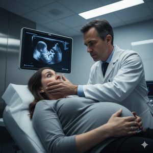 Dr. Alan Cooper, her obstetrician for nearly a year, leaned over the ultrasound screen. He usually spoke with calm assurance during these scans—“here’s the head, there’s the heartbeat”—but today, his voice wavered. The hand holding the probe began to shake.
