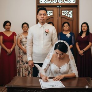 Ang bahay ni Nam sa Makati ay pinalamutian ng sariwang bulaklak, at ang altar ng pamilya ay nag-uumapaw sa usok ng insenso. Ang buong kamag-anak ng pamilya ng lalaki ay naroroon. Nakasuot si Lan ng simpleng baro’t saya na kulay rosas, may banayad na ngiti ngunit halatang kinakabahan.