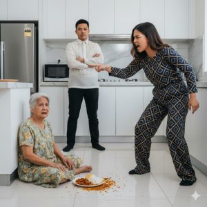 Mariana watched, standing and holding her waist, speaking in a sharp tone. “Go ahead, Doña Rosario. If you don’t eat that, you won’t have anything to eat until tomorrow.” Javier was paralyzed. The words rang out like knives. He saw his mother shaking, her hand unsteady as she tried to swallow the food. “I can’t do it, it’s ruined,” the old man whispered. Mariana bowed her head as if frozen.