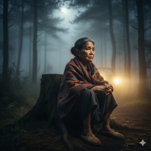 At sa susunod na segundo, isang imahe ang sumilay sa dilim: larawan ni Aling Lila, nakaupo sa hukay, nakayuko, may mata na puno ng luha.