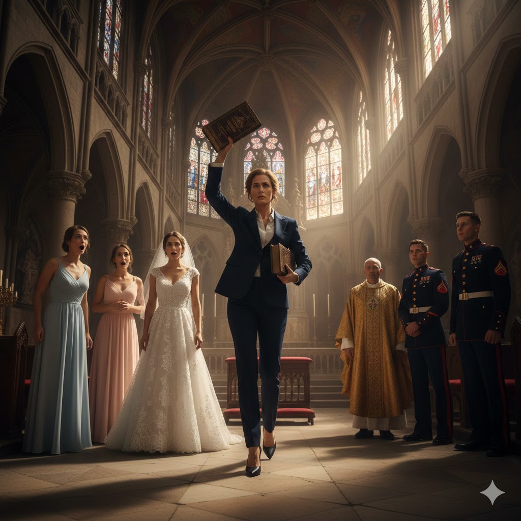She then turned her steely gaze to the priest. “Father, this wedding is adjourned. Permanently.”