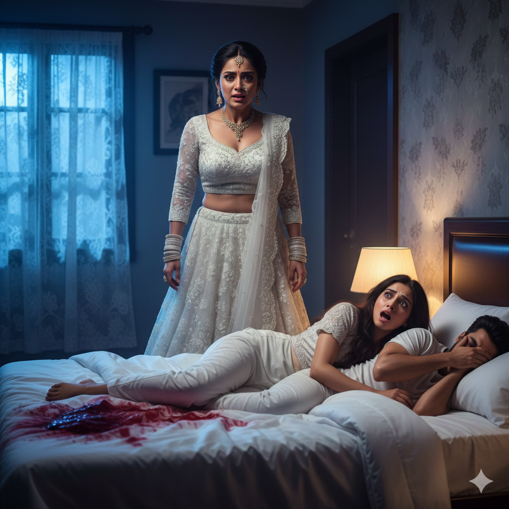 On the pure white sheet… there was a reddish-brown stain, lightly smeared like dried bl:ood.