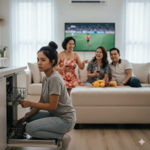 I held my hands together. At that moment, I understood that the dishwasher I had bought was not only considered a “luxury”, but also a thorn in the side of my husband’s family. And then I said to myself, “Maybe, what needs to be changed is not the machine… It’s my own life.”