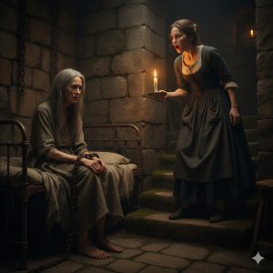 The metal hung twisted, as if something or someone had forced it from within. She swallowed, took a breath, and pushed open the door. The smell of confinement hit her. It was a mixture of dust, dampness, and loneliness. The flashlight illuminated a narrow hallway with old stone walls. She descended the wooden steps one by one, the echo of her breathing filling the space. At the end, she heard the murmur of a voice. “Who’s there?” she asked in a whisper.