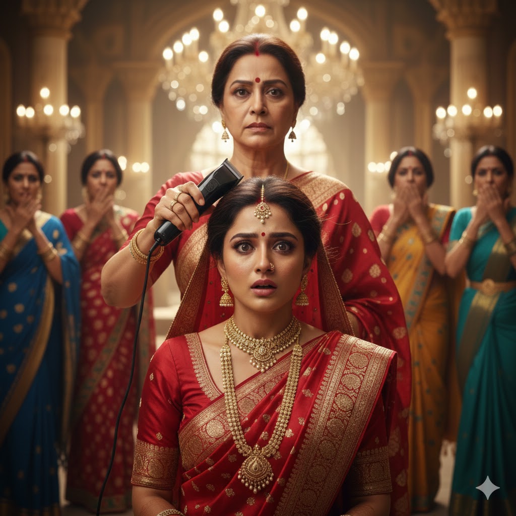 In the most painful moment, Mrs. Sharma stepped forward, lowered her shoulders, and dragged the razor in one long stroke.