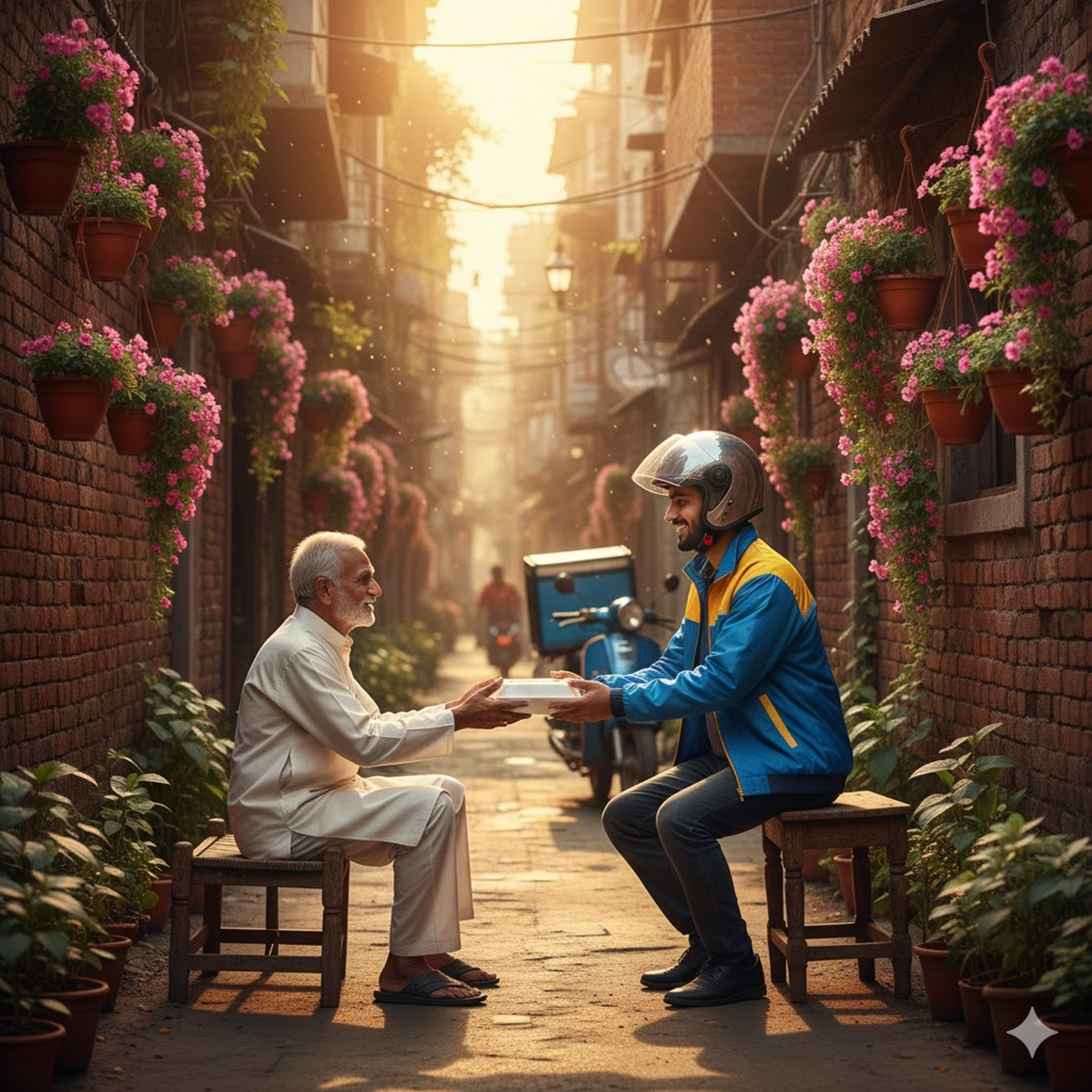 Every afternoon, the familiar sound of Ravi’s motorcycle stopping at the gate and the affectionate knock on the door filled Mr. Raghavan’s heart with joy. Ravi didn’t just deliver food; he asked about his health, shared amusing stories from the city, and revived old memories. Once, when Mr. Raghavan was very ill, Ravi even bought his medicines and stayed to talk with him, easing his loneliness. Over three years, they became family without blood ties. Ravi thought of him as his grandfather, and Mr. Raghavan considered Ravi his grandson.